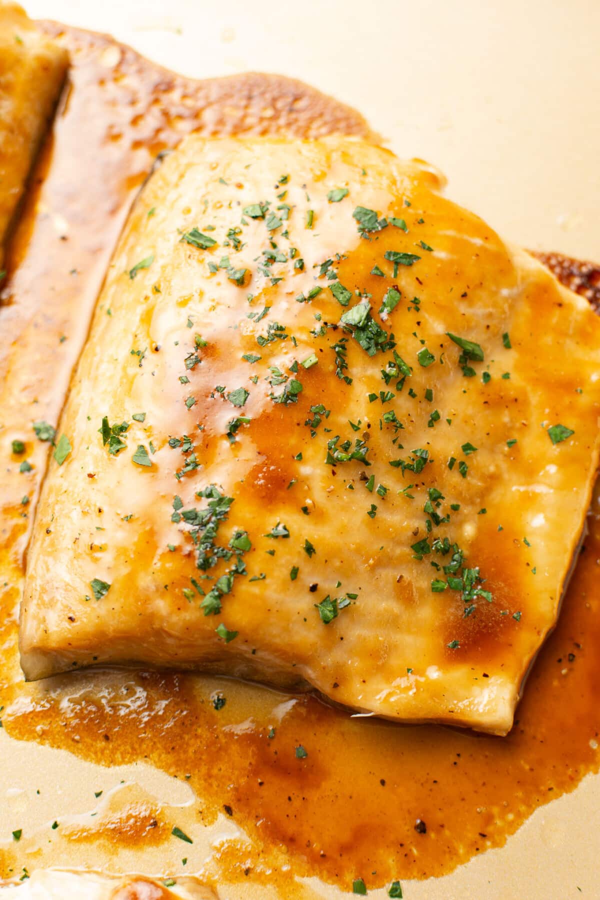 Spread the glaze evenly over the Arctic char. Bake until it flakes easily with a fork, and give it a check earlier to avoid overcooking. Top with fresh parsley, and add additional salt & pepper if needed.