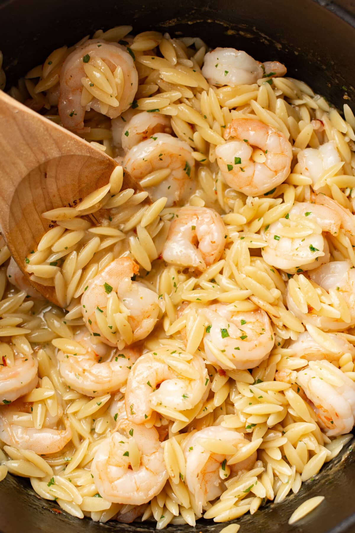 This orzo with shrimp recipe feels fancy despite being ready in just 30 minutes, so it’s a fantastic choice for date night or easy entertaining, especially since it’s made all in one pot. The naturally sweet, succulent shrimp just go so well with everyone’s favorite pasta!